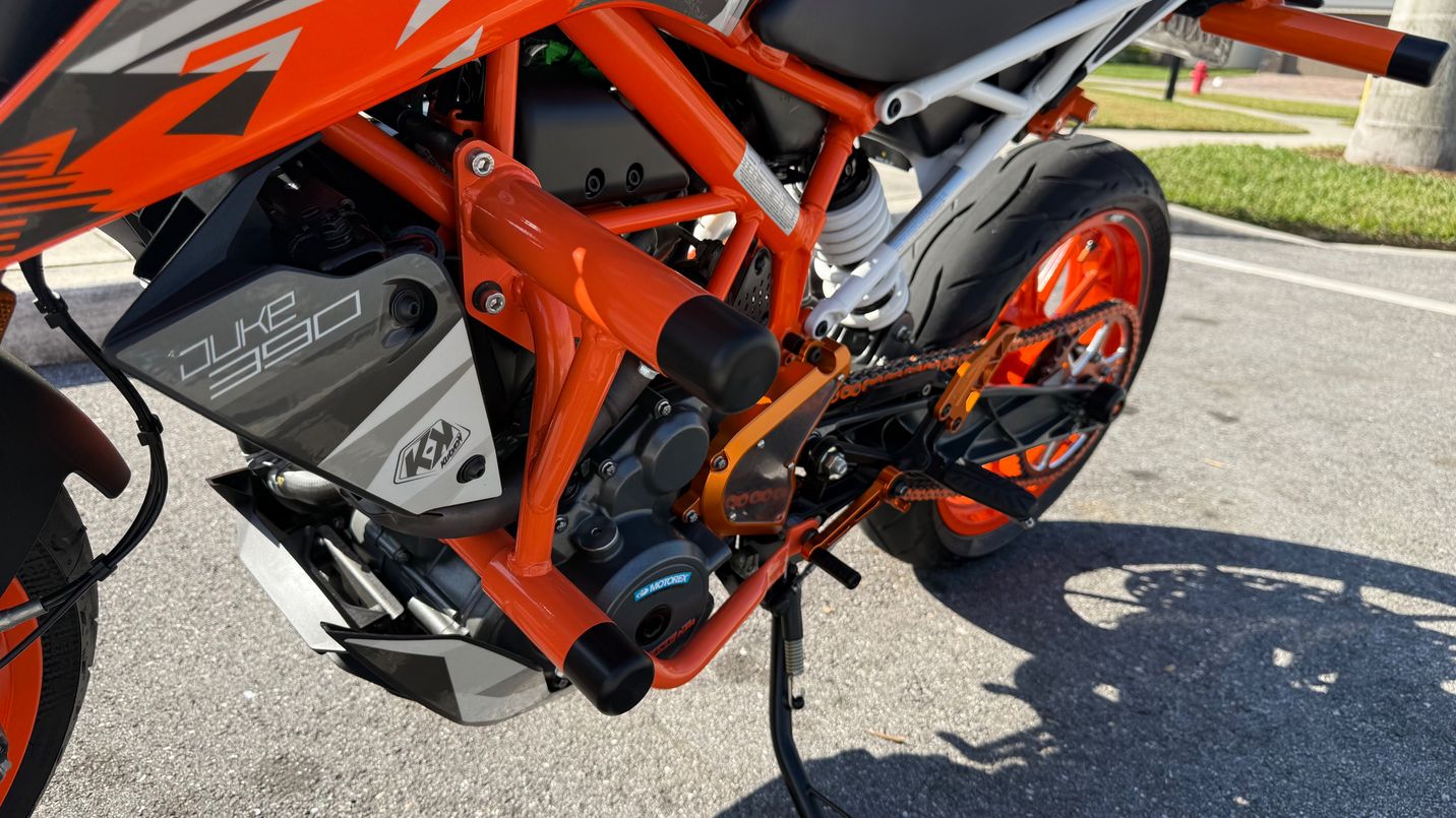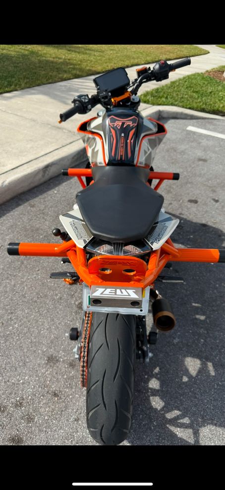 Ktm 390 cc Duke *upgraded Custom Stunt bike. Only 900 miles in. Kept in AC’d Garage on battery tender. Lots of aftermarket parts. - wrap (built for a motor show) - crash cages - 1 finger clutch - 12 o’clock bar - bigger sprocket - etc. - see photos for all the upgrades No damage. Not even a scratch. Clean title. Beautiful and awesome bike for a stunt rider 😎 Unique as it gets!